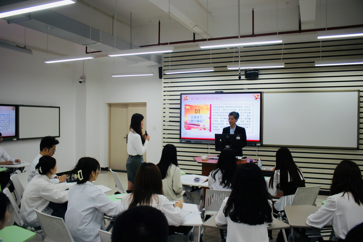 孙芳城以“深刻理解‘两个确立’的决定性意义”为主题,从“两个确立”是历史和人民的选择,“两个确立”具有决定性意义,把“两个确立”融入血脉、付诸行动等三个方面,理论结合实际的讲解了“两个确立”的重要性和发展历程。
