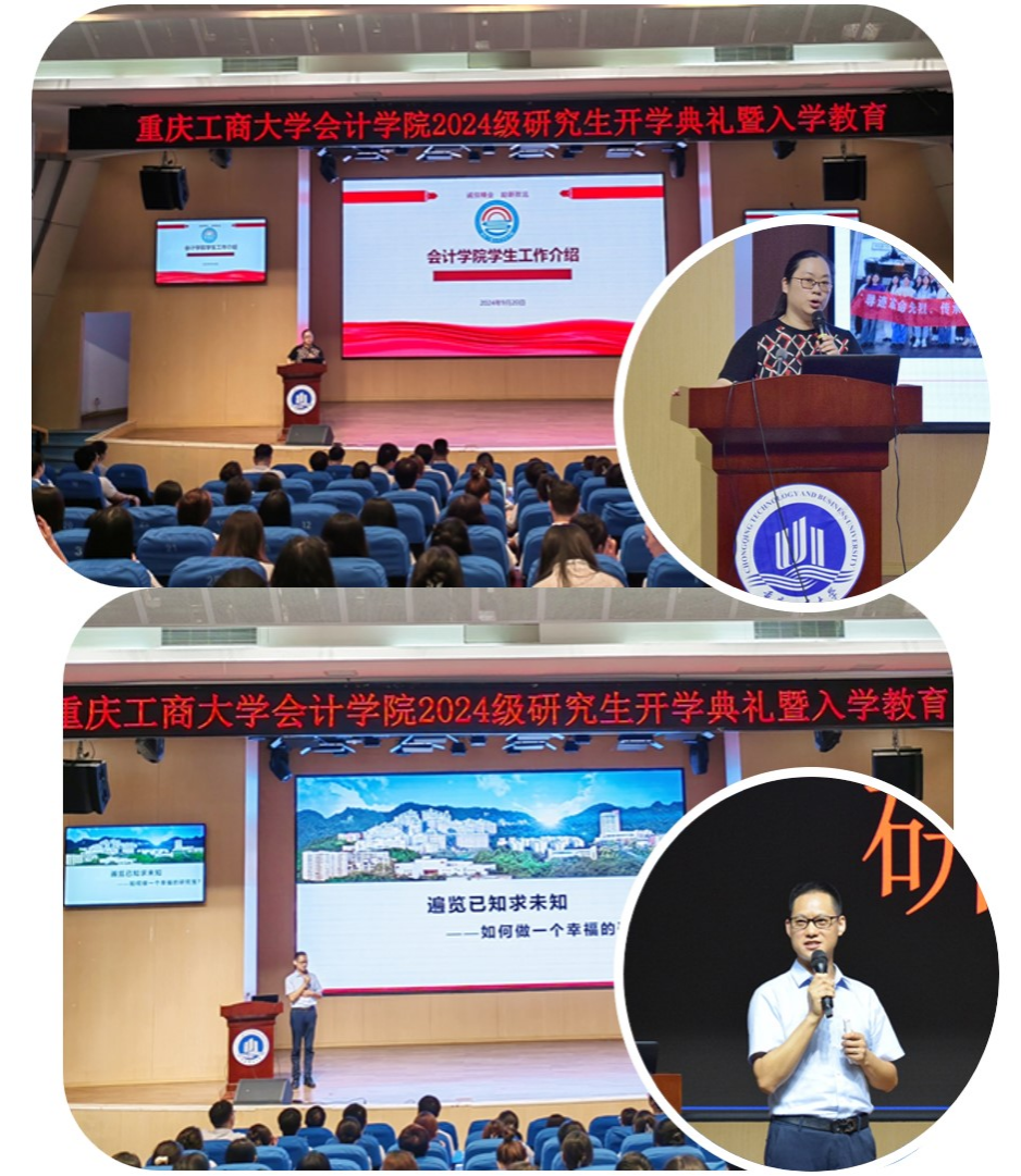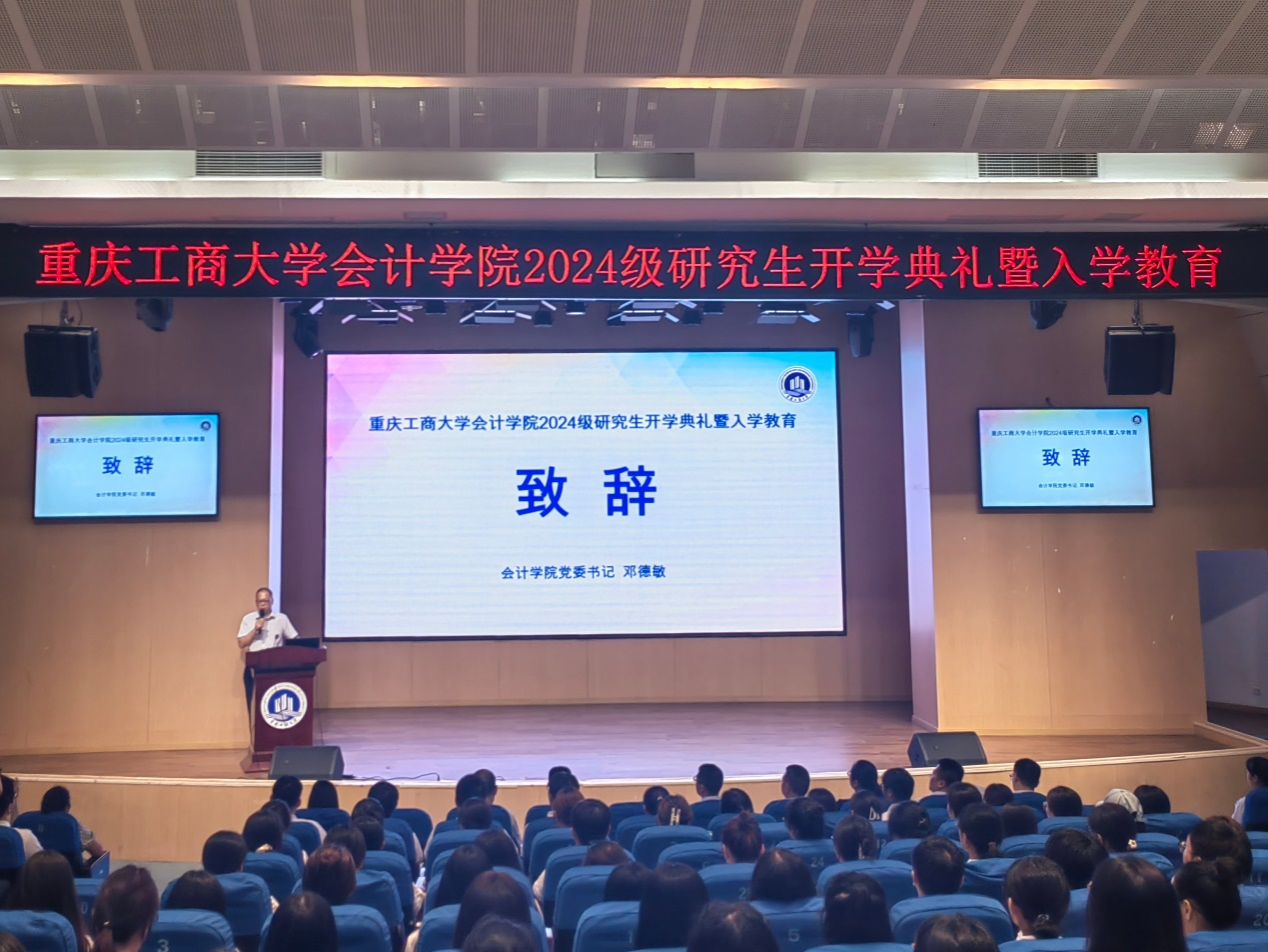 9月20日下午,bb贝博艾弗森官方网站2024级研究生开学典礼暨入学教育在明智楼110100报告厅隆重举行。委书记邓德敏、经理钟廷勇、副书记郝颖、副经理蒋水全、事业导师代表重庆天健会计师事务所重庆分所总经理李青龙、宗申产业集团有限公司副总裁蒋宗贵、浪潮通用软件有限公司重庆区渠道总监冉红利、新道科技股份有限公司重庆分公司总经理徐福年、天职国际会计师事务所重庆分所所长童文光、研究生导师代表程文莉及研究生教育相关工作人员出席了本次会议,bb贝博艾弗森官方网站2024级全体研究生参加了本次典礼。典礼由bb贝博艾弗森官方网站专职组织员尹建平主持。