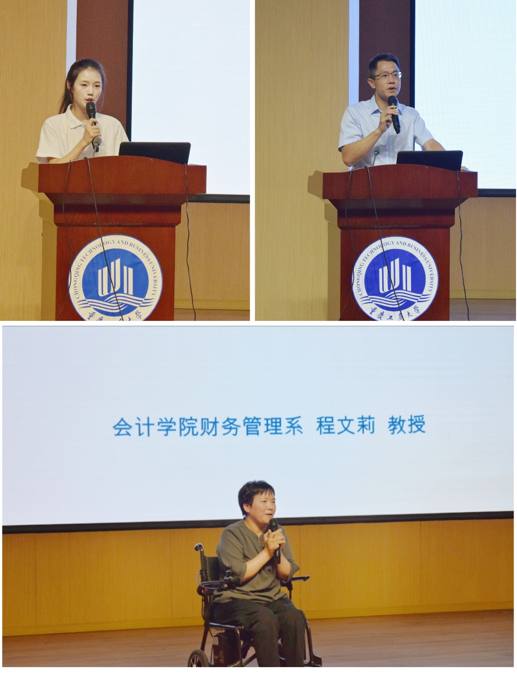 2024级会计学硕周明露作为新生代表发言,她首先感谢学院提供学习平台和良好的科研环境,随后倡议同学们在面对研究生生活的挑战时要秉持着对专业的热爱,努力把握机会,挑战自我。