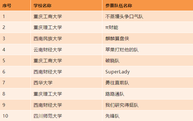 西南地区首届“天健杯”MPAcc&MAud员工案例大赛初赛共有来自21所高校的65支队伍报名参赛,其中MPAcc队伍60支,MAud队伍5支。每支队伍的案例报告经7位专家评审,以去掉最高分和最低分取平均分的方式计算每队成绩,最终10支队伍晋级复赛(9支MPAcc队伍,1支MAud队伍)。经西南地区会计审计专业学位研究生教育联盟秘书处复核,现将晋级复赛名单予以公示。