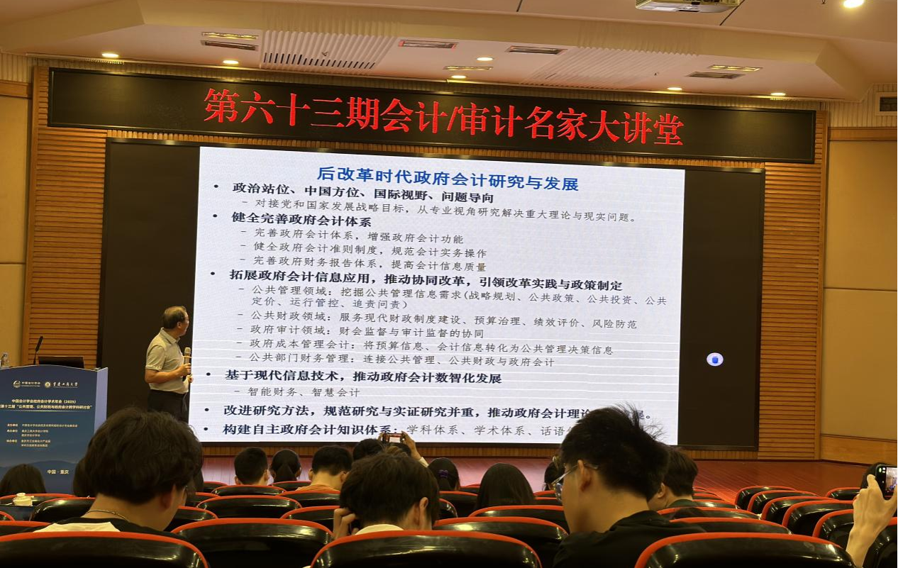 最后,李教授还探讨了政府会计研究问题。分析了后改革时代政府会计研究与发展,李教授特别强调,政府会计需改进研究方法,规范研究与实证研究并重,推动政府会计理论创新发展。