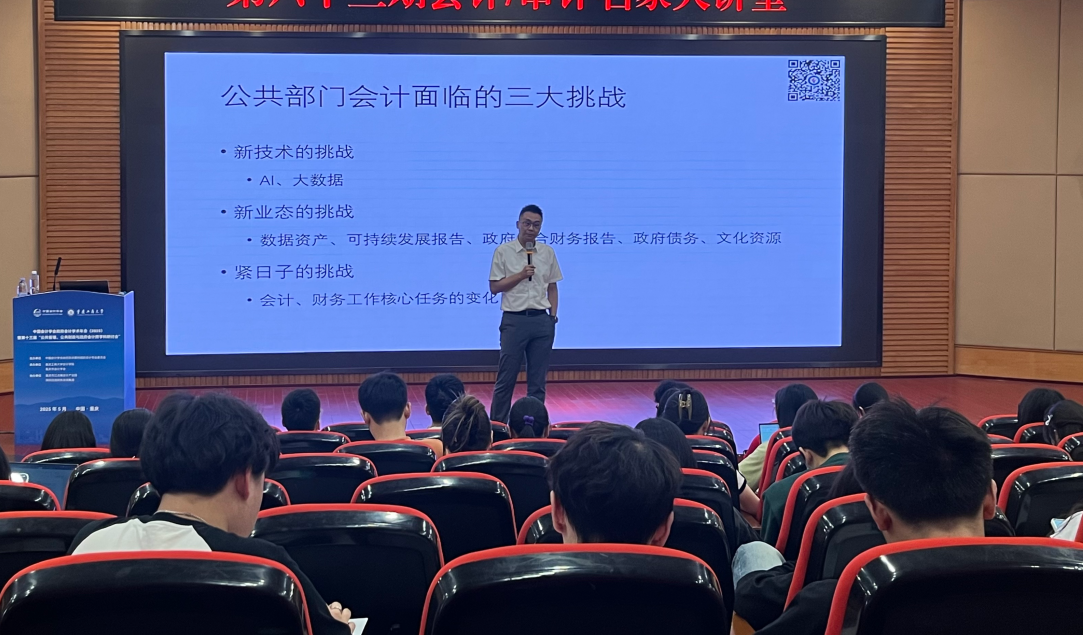 接着,张教授讲述了公共部门会计面临的三大挑战。首先,是新技术的挑战。AI、大数据的日益发展,流程标准化、判断证据化的行业更加容易被AI取代,如何让会计行业满足智能化需求是从业者面对的紧迫问题。其次,是新业态的挑战。数据资产计量、可持续发展报告编制、政府综合财务报告完善、政府债务管理及文化资源价值评估等新课题不断涌现,给会计核算与信息披露带来巨大压力。最后,是紧日子的挑战。会计、财务工作核心任务的变化是需要从业者不断提升自己去适应的。