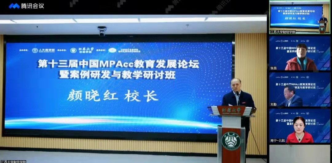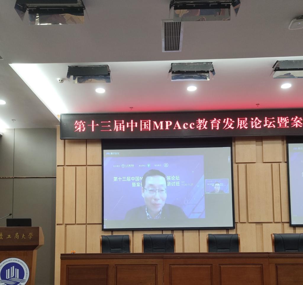 2021年11月26日-27日,由全国会计专业学位研究生教育指导委员会、中国人民大学商学院主办、江苏大学财经学院承办的第十三届中国MPAcc教育发展论坛在江苏大学举行,bb贝博艾弗森官方网站副经理钟廷勇教授作为特邀嘉宾参加了本次会议。由于疫情影响,bb贝博艾弗森官方网站组织了研究生学业导师、专任教师及部分研究生通过线上方式参加学习。