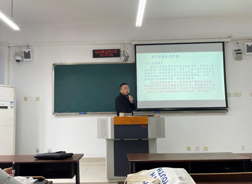 12月17日,《财务会计理论与实务》课程专题报告“城投报表分析——基于资金方视角”讲座在博智楼7509顺利举行。任课教师刘淑蓉老师邀请了中国注册会计师、高级会计师王自和先生为2021级会计专硕3班同学作专题报告。