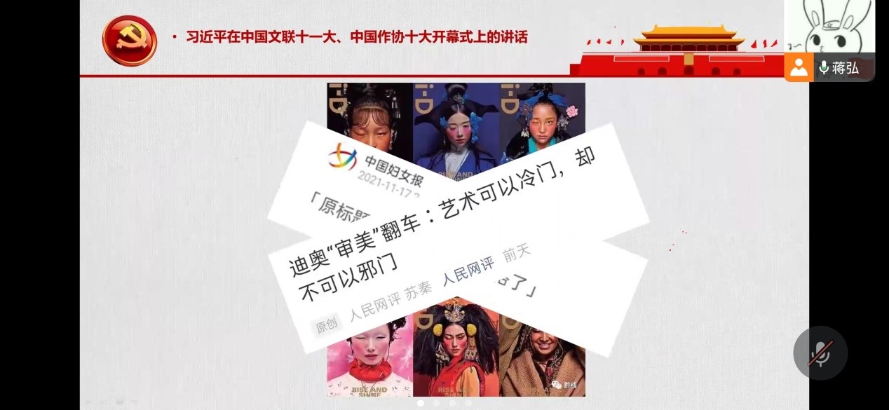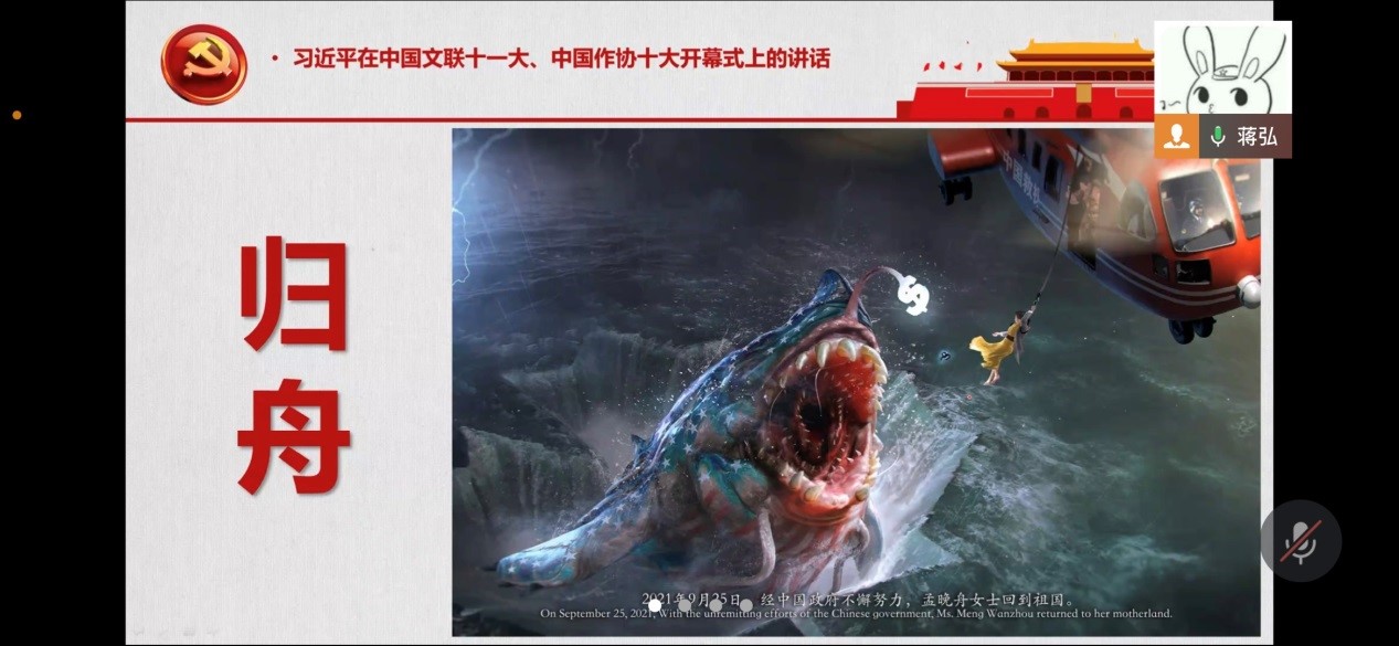 首先,蒋弘领学了“习近平在中国文联十一大、中国作协十大开幕式上的讲话”。党员同志们通过学习习总书记的讲话认识到:中国共产党是具有高度文化自觉的党,党的百年奋斗凝结着我国文化奋进的历史。中国共产党从成立之日起就把建设民族的科学的大众的中华民族新文化作为自己的使命,积极推动文化建设和文艺繁荣发展。