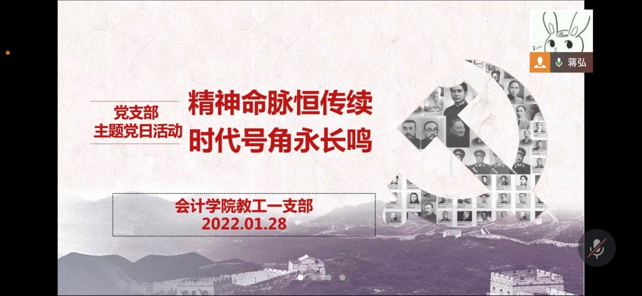 2022年1月28日,bb贝博艾弗森官方网站教工第一党支部通过企业微信召开了名为“精神命脉恒传续,时代号角永长鸣”的主题党日活动。活动由支部书记蒋弘主持,教工一支部全体党员准时参会。
