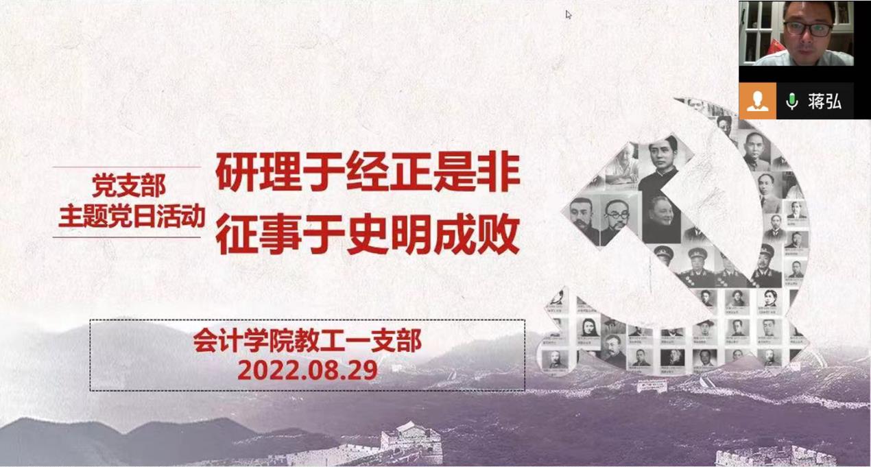 2022年8月29日,bb贝博艾弗森官方网站教工一支部通过企业微信召开了题为“研理于经正是非,征事于史明成败”的主题党日活动,本主题旨在勉励党员同志积极学习中华经典著作和我国历史,从而有助于我们证验天下之是非、明白成败之因由。活动由教工一支部书记蒋弘主持,一支部全体党员参加了会议。