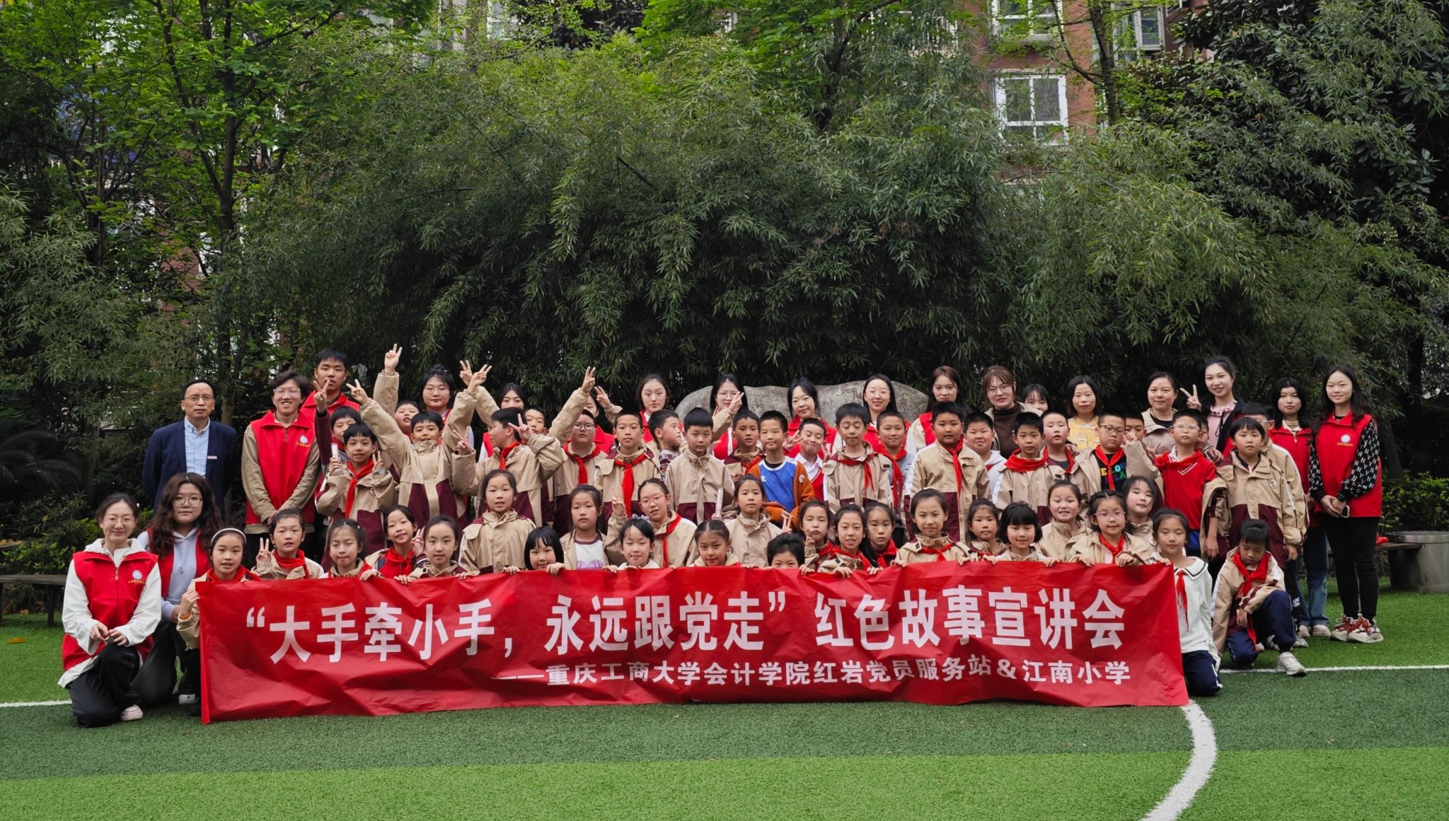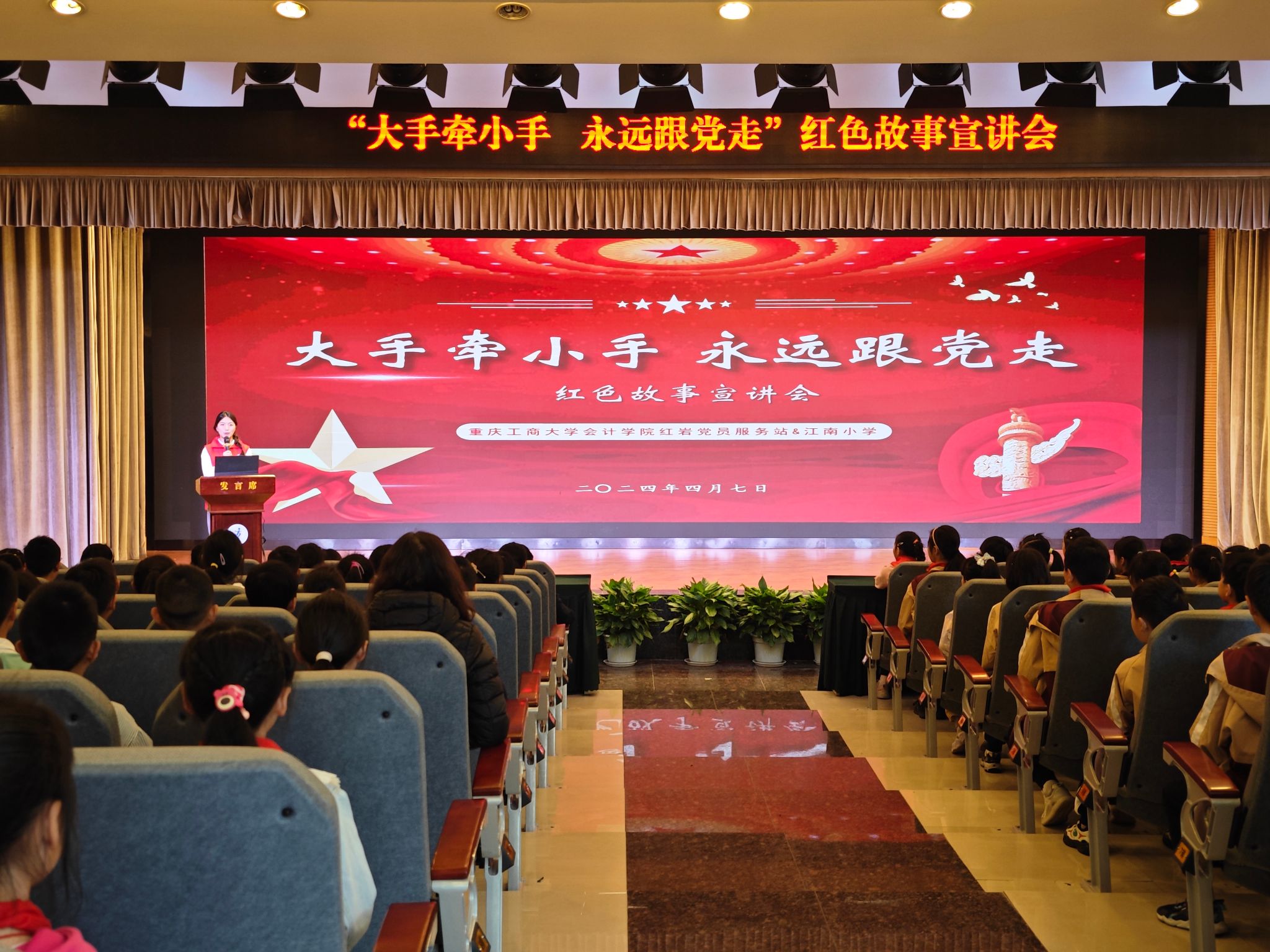 一双双满含希冀的眼睛、一次次踊跃积极的互动、一声声坚定响亮的回答……2024年4月7日,由bb贝博艾弗森官方网站红岩党员服务站主办的“大手牵小手,永远跟党走”红色故事宣讲会在江南小学开展。活动通过宣讲一个个引人入胜的红色故事,不时穿插趣味十足的互动小游戏,为江南小学的小员工们带去了一堂别开生面的思政课,这也是推进大中小员工思想政治教育一体化建设的生动实践。