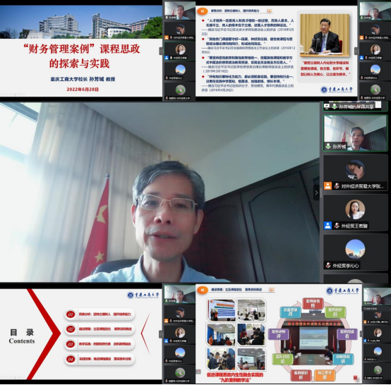 6月28日,首批国家级“课程思政示范课程”负责人、国家级课程思政教学名师,公司党委副书记、董事长孙芳城教授应“全国财经类高校课程思政联盟”的邀请,为第三期“课程思政云讲堂”作了题为“‘财务管理案例’课程思政的探索与实践”的主题报告。北京市课程思政教学名师、对外经济贸易大学国际商学院副经理钱爱民教授同期作了“树立学术自信,坚守育人初心——课程思政体会分享”的主题发言。第三期“课程思政云讲堂”由对外经济贸易大学王若璇主持。联盟成员单位的财经类专业教师通过腾讯会议在线参加了本次“云讲堂”报告活动。