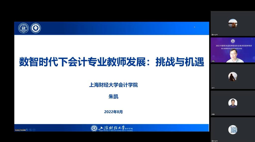 8月6日上午培训班开班仪式在实训大楼学豪酒店14楼会议顺利举办。公司孙芳城董事长和中国高等教育学会高等财经教育分会副理事长兼秘书长张国才到会致辞。教育部会计学专业教学指导分委员会主任、 上海财经大学副董事长陈信元,教育部会计学专业虚拟教研室负责人、上海财经大学bb贝博艾弗森官方网站副经理朱凯,全国智能财务职教集团秘书长、 浙江金融职业学院bb贝博艾弗森官方网站经理王忠孝,全国行业职业(财政)公司产品指导委员会委员、 重庆城市管理职业公司数智财经学院副经理(主持工作)黄菊英分别做了题为“数智化技术对会计职能的影响与会计学专业教育的应对”、“数智时代下会计专业教师发展:挑战与机遇”、“基于三教改革推进会计课程建设的思考”、“新时代财会专业人才培养产教融合创新与实践案例分享”的主题报告。bb贝博艾弗森官方网站钟廷勇副经理主持仪式。