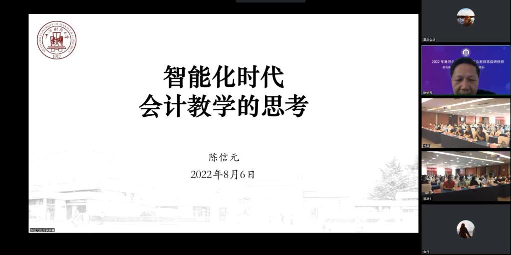 8月6日至10日,由公司主办,中国高等教育学会高等财经教育分会、教育部会计学专业教学指导分委员会秘书处、教育部会计学专业虚拟教研室、全国智能财务职教集团指导,重庆城市管理职业学院协办,重庆博特云信息技术有限公司、北京融智国创科技有限公司提供技术支持的2022年暑假全国高等院校财会教师高级研修班开班仪式在公司实训大楼学豪酒店顺利举行。