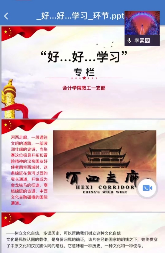 随后,梅波老师针对领学内容发表了感想。他认为习总书记的文章将重要理论与实践深度融合,思想深刻,内容丰富,学习后受益匪浅。他从三个方面谈了自己的体会:一是对新发展理念的认识。完整贯彻新发展理念需要坚持系统观念,要统筹发展和安全。推进发展的时候要善于预判各种挑战,协调稳增长和防风险的关系,促进高质量可持续稳定发展;二是对新发展理念相关规划的认识。通过资料学习以及在规划部门工作经验,梅波分享了国家、地方、高校等相关规划,他将新发展理念、高质量发展与十四五规划结合,重点根据财政部印发的《会计改革与发展“十四五”规划纲要》谈了扩大会计内涵和外延的重要性;三是要将新发展理念融入教学科研。创新与教学密切相关,教师切忌照本宣科,要拓展员工创新思维能力,教育员工知其然和知其所以然,引领员工更好理解和运用相关知识,激发员工的思辨能力,适应新文科的要求;科研工作更需要创新,教师需要创新攻坚克难,拓展会计的内涵和外延,从战略层面思考问题,发挥会计的决策有用性,加强与大数据技术的密切融合。