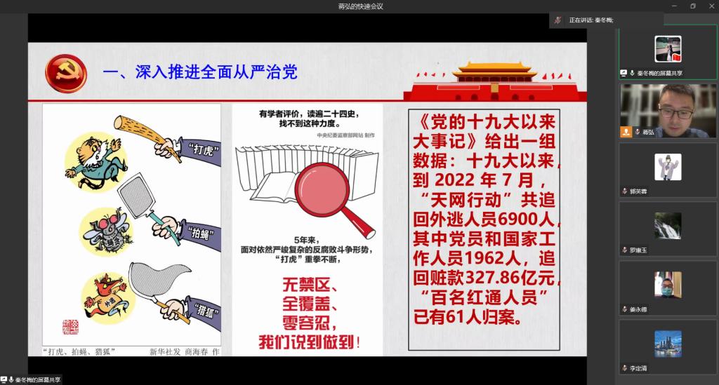 最后,bb贝博艾弗森官方网站邓德敏书记做了总结发言。邓书记指出,这次活动既保持了“好…好…学习”专栏这一支部优良传统,又采用了两位委员共同领学的新模式,这就是一种守正创新;各位老师在讲述的过程中能联系自身实际,提出要不断完善自我,不辜负员工的期望,这就是一种踔厉奋发。邓书记肯定了分点逐次学习二十大报告的方式,并建议在后续的系列活动中通过党员讲微党课的形式,发动更多的支部党员参与到对二十大报告精神的阐释与落实中来,在提升课程思政水平的同时,发挥出党员在各种活动中的先锋模范作用。