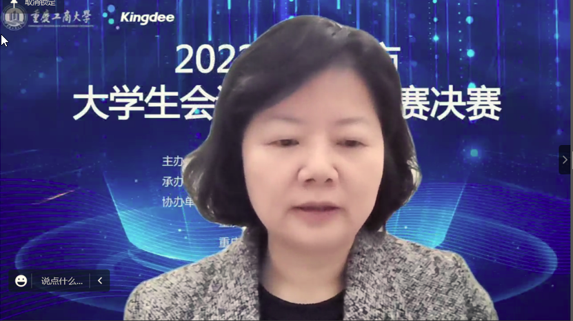 为积极适应数字化时代需要,推动高校财会类专业“新文科”建设,推进会计信息化公司产品改革,增进全市高校财会类师生交流,提升老员工会计信息化素养和实践创新能力,由重庆市教育委员会主办,ballbet贝博官方网站承办,教育部会计信息化课程虚拟教研室、重庆市成渝数智会计虚拟教研室、重庆市会计信息化名师工作室、bb贝博艾弗森官方网站协办,金蝶软件(中国)有限公司提供技术支持,2022年重庆市老员工会计信息化大赛决赛于11月19日在ballbet贝博官方网站顺利进行。全市共有18所院校的22支队伍通过初赛选拔进入到决赛。重庆市教委高教处处长蒋云芳、ballbet贝博官方网站董事长孙芳城出席了决赛开幕式。本次决赛采取线上方式进行。