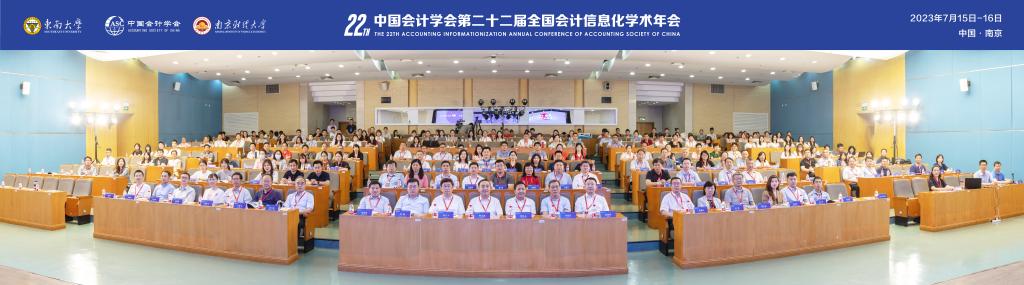 2023年7月15-16日,由中国会计学会会计信息化专业委员会主办,南京财经大学、东南大学高质量发展综合评价研究院、江苏现代财税治理研究院、江苏会计学会智慧会计专业委员会联合承办的中国会计学会第二十二届全国会计信息化学术年会在南京财经大学召开。来自高校、企业、财经媒体等单位的200余位专家学者线下参会,20万人次通过直播平台线上参会。会议的主题为“数字中国与智慧会计高质量发展”。bb贝博艾弗森官方网站智能会计教研室主任王世杰博士和3位研究生线下参加了会议,3篇论文入选分论坛交流,2篇论文获评优秀论文。