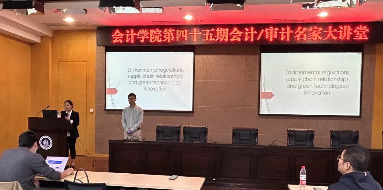 环境保护与技术创新是学界关注的热点话题,供应链技术的应用与研究更是bb贝博艾弗森官方网站研究生实现技术跨界的一大途径,是实现技术能力水平提升的重要方法。为提升公司研究生学术素养及专业热点关注能力,2023年10月27日,bb贝博艾弗森官方网站第四十五期会计/审计名家大讲堂在公司新图书馆会议中心多功能厅顺利举行。加拿大温莎大学Odette商学院安云碧教授受邀为公司师生做了题为《环境法规、供应链关系和绿色技术创新》的课题研究分享,学院150余名师生参加学习交流。讲座由MPAcc教育中心主任陈欢主持。