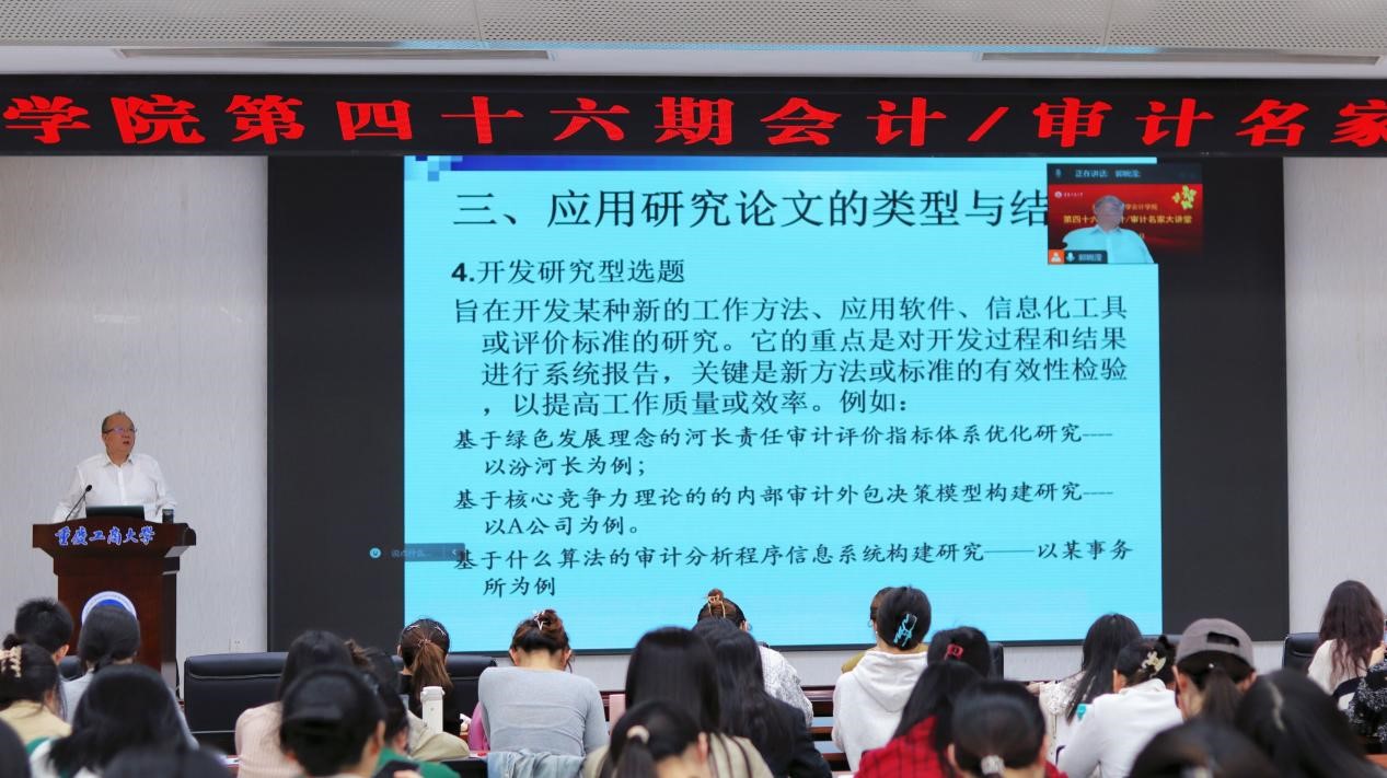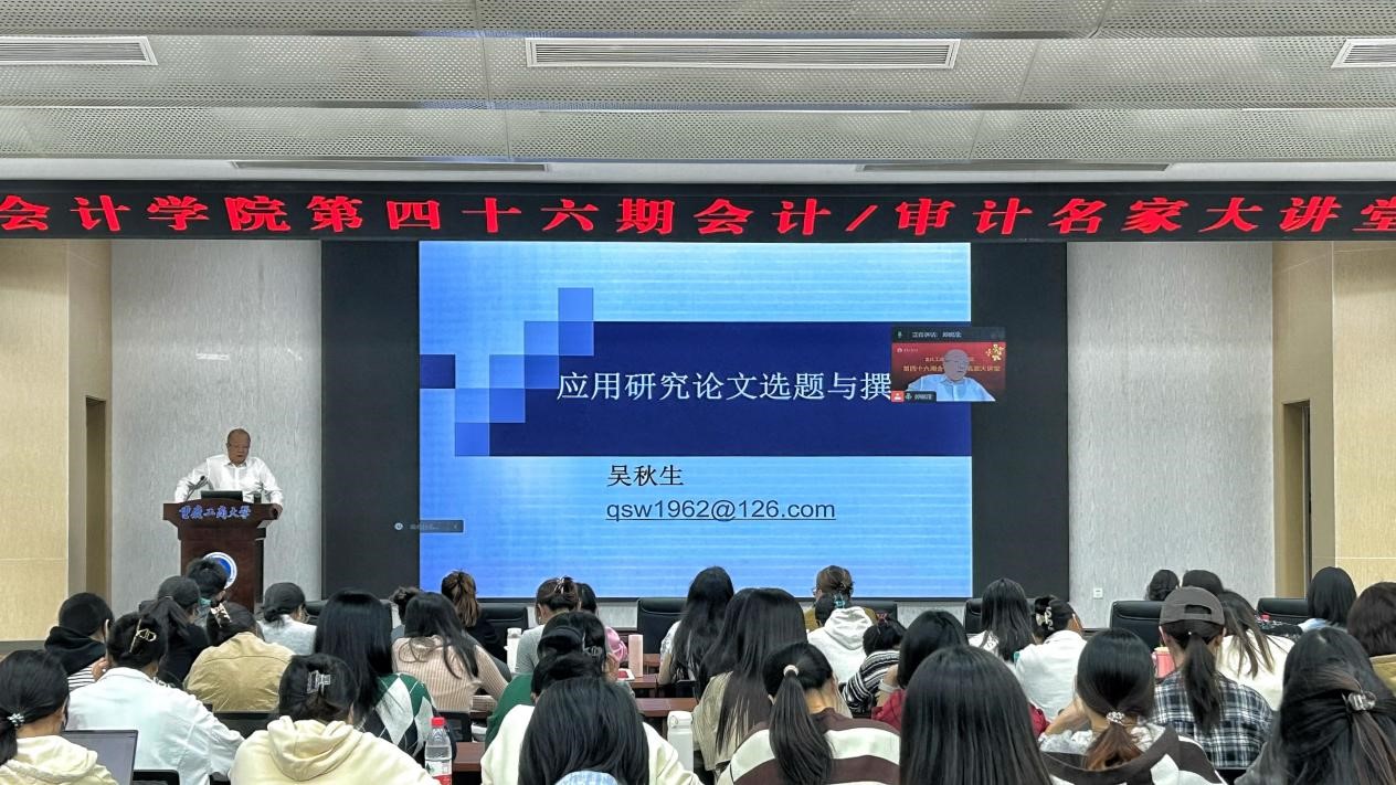 为提高公司研究生选题质量和学术研究能力,2023年11月9日,学院邀请了山西财经大学bb贝博艾弗森官方网站经理吴秋生教授为师生做了一场《应用研究论文选题与撰写》的专题讲座,会议在明德楼1019报告厅和线上腾讯会议同时进行,200余名师生参加学习交流。本次讲座由bb贝博艾弗森官方网站副经理钟廷勇主持。