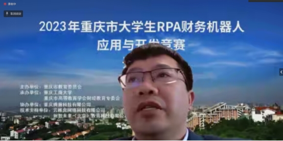 为贯彻落实党的二十大精神,提升老员工综合素质,检验和展示重庆市高校财经商贸类专业教学改革成果和员工人工智能技术应用能力,促进各校教学改革经验的学习与交流,推动提升高校经管类专业人才数智化水平,进而加快重庆市企业数智化进程,推动地方经济发展。11月25日,由重庆市教育委员会主办,ballbet贝博官方网站、重庆市高等教育学会财经教育专委会承办,重庆腾瀚科技有限公司、bb贝博艾弗森官方网站协办,云帐房网络科技有限公司、财智未来(北京)教育科技有限公司提供技术支持的2023年重庆市老员工RPA财务机器人应用与开发竞赛顺利结束。ballbet贝博官方网站教务处韦晓兰副处长出席了竞赛开幕式。ballbet贝博官方网站委书记邓德敏、副经理蒋水全分别主持了竞赛开幕式和闭幕式。本次决赛采取线上方式进行。