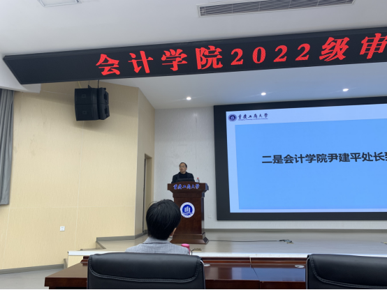 11月22晚,bb贝博艾弗森官方网站在明德楼1019报告厅晚上19:00-21:00成功举办了2022级审计学专业学习交流会。学院专职组织员尹建平、审计系副主任袁利华和深圳日浩财务咨询集团有限公司人力资源总监、深圳日浩智能财经研究院能力建设总监庄琪珠参加了会议,会议由袁利华主持。