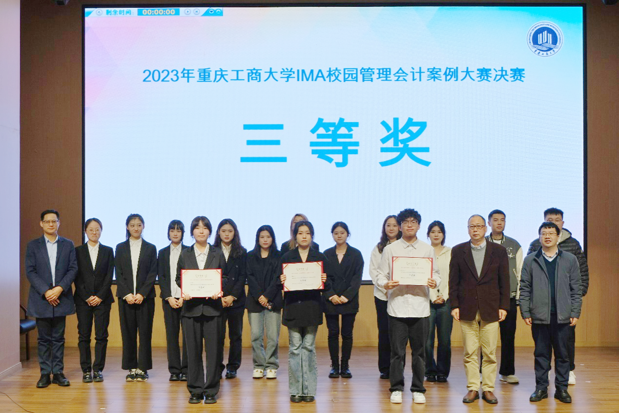 主持人对比赛规则进行了简单介绍,自本届IMA校园管理会计案例大赛启动,学院200多名本科生和研究生积极参赛,共收到了27个案例作品。学院邀请了业界专家对员工案例进行初评,10份优秀案例脱颖而出,进入校内决赛,并将从中角逐出5支优秀队伍代表学校参赛。本次比赛分为案例汇报和评委点评两个环节。参赛队伍围绕案例主题,通过丰富多样的表现形式,将管理会计理论与实务案例有机结合,展示了同学们敢于创新、勤于思考、精于合作的良好风貌。经过激烈的比拼后,好柿花生队获一等奖;请回答2023队、顺利毕业队获二等奖;FBTO队、深藏blue队、少女先锋队获三等奖;BOC队、重庆小锦鲤队、The Galaxy队、Light of Academic队获优胜奖。
