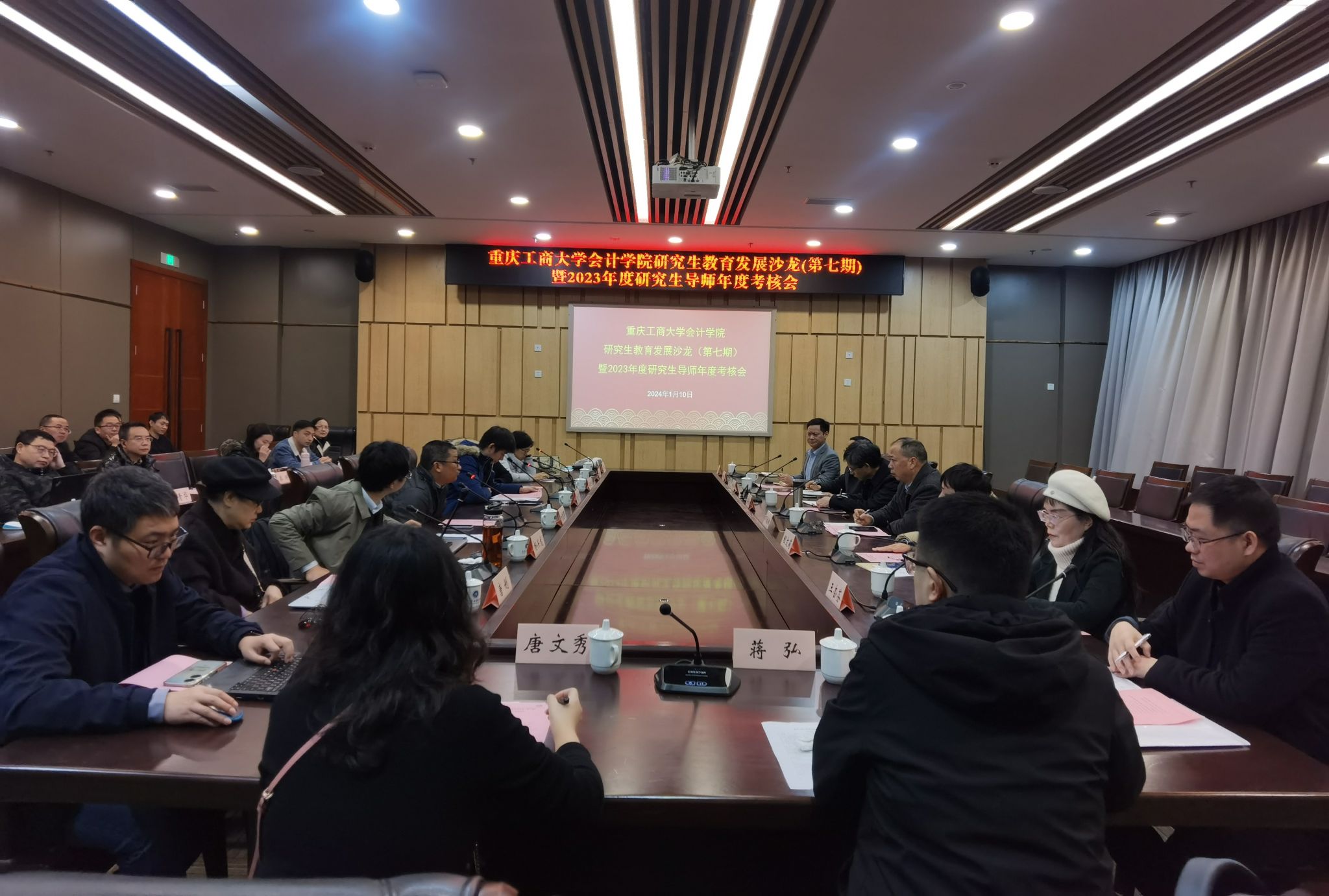 为全面推进研究生教育高质量发展、全方位提高学院团队建设水平,2024年1月10日上午,bb贝博艾弗森官方网站研究生教育发展沙龙(第七期)暨2023年度研究生导师年度考核会在新图书馆会议中心五会议室顺利举行。ballbet贝博官方网站学术委员会主任、会计学科带头人孙芳城,委书记邓德敏、副经理钟廷勇及研究生学业导师和研究生教育相关管理人员50余人参加了本次沙龙。会议由bb贝博艾弗森官方网站副经理钟廷勇教授主持。