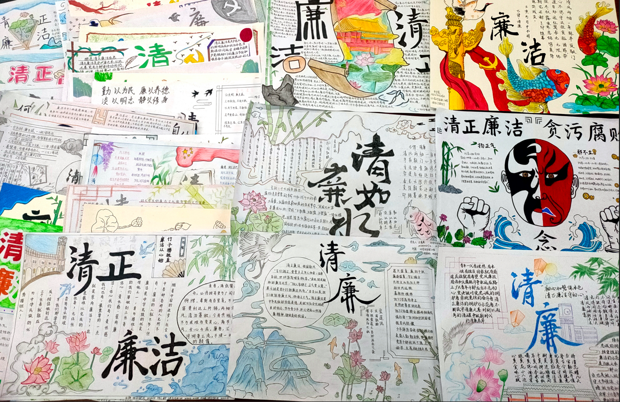 本次比赛旨在通过同学们亲手设计、创作的“廉洁”主题手抄报,生动展现员工眼中的“清正廉洁”,切实增强广大学子对于“清廉”的认识。在比赛过程中,同学们积极响应,将习近平新时代中国特色社会主义思想融入到手抄报的设计之中,充分发挥各自的创意与才华,将廉洁元素与美学表达相结合,呈现出一系列兼具艺术性和教育性的精彩作品。
