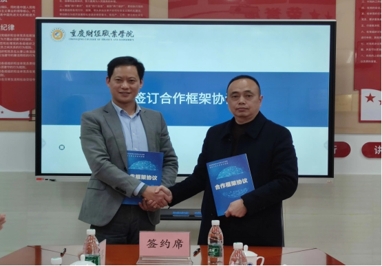 周阅和钟廷勇代表双方签订合作框架协议。