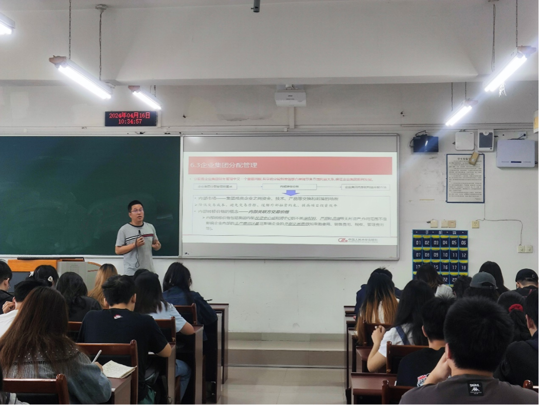 在课上,青年教师秦明博士运用了多种教学方法和手段详细讲解了《高级财务管理》课程中企业集团分配管理相关知识点。《高级财务管理》课程是财务管理专业核心课,员工们或凝神聆听,或积极举手发言,气氛既严肃又活跃。教室的后排,领导及督导们认真观察、仔细记录着授课内容和员工反应。讲课结束后,领导及督导们对教学方法的创新展开了激烈讨论,并与主讲教师进行了深入交流。现场听课的青年教师们也参与其中,大家各抒己见,不同的观点碰撞出了诸多创新思路。
