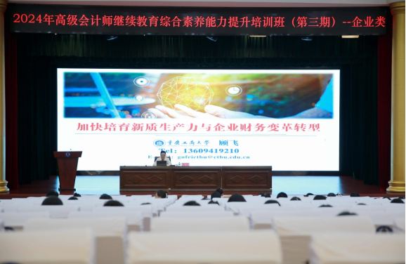 为了深入学习贯彻习近平总书记在重庆考察时的重要讲话精神,充分发挥企业财务对于加速创新要素聚集、优化创新资源配置,强化科技创新和产业创新深度融合,因地制宜发展新质生产力的关键性基础作用,5月24日,公司课程思政研究中心主任、国家级课程思政教学名师、重庆市高校课程思政示范课程“财务管理学”课程负责人顾飞副教授应邀为重庆市2024年高级会计师继续教育综合素养能力提升培训班(第三期)-企业类学员作了题为“加快培育新质生产力与企业财务变革转型”的专题培训,并受聘为重庆市财政会计人员教育中心特聘教授,为全体参训学员奉上了一堂综合素养能力提升的专业“大思政课”。