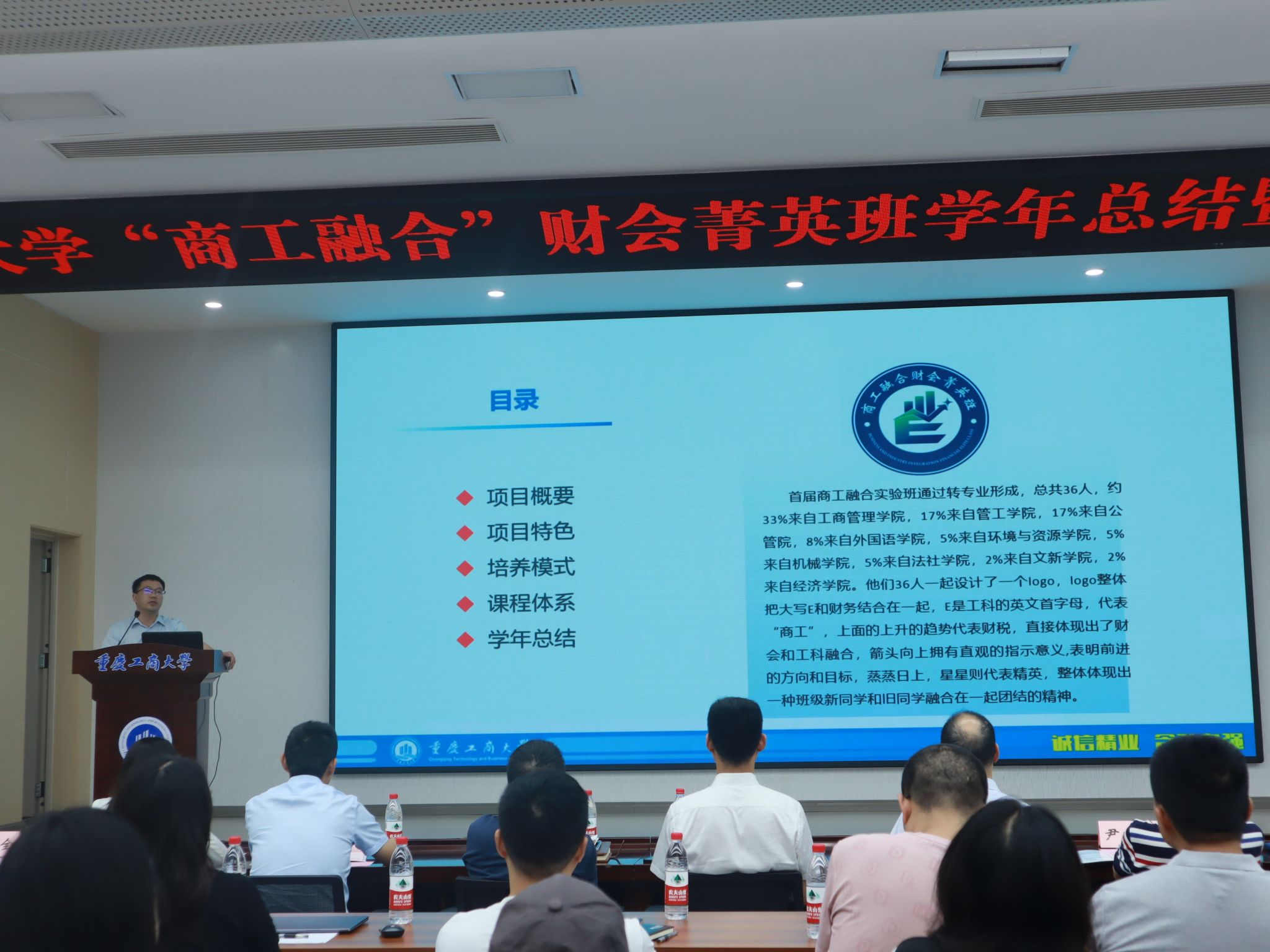 bb贝博艾弗森官方网站为落实学校“商工融合”人才培养改革工作部署,2023年跨专业筛选38位同学进入财务管理专业,单独组建“商工融合”财会菁英班,以“商工融合 智领未来”为理念,以“财会助推科技改变世界”作为指导思想,探索培养具有强国复兴使命感,拥有战略管理能力、卓越思维能力、产业技术服务能力、数智技术应用能力和财会专业服务能力的首席财务官。本次大会的举行即是学年总结,也是未来展望,为项目顺利运行注入了新的力量。