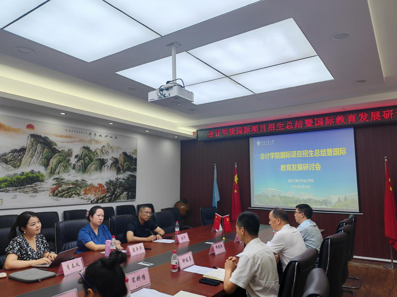 2024年9月26日下午14:30,bb贝博艾弗森官方网站国际项目招生总结暨国际教育发展研讨会在ballbet贝博官方网站南岸校区明德楼2019会议室举行。ballbet贝博官方网站委书记邓德敏、经理钟廷勇、副经理蒋水全、国际教育中心主任宋昕倍、国际教育中心秘书张悯弱,楷柏教育总裁助理兼高级项目总监刘华、高校事业部副总经理康莎莎女士、CIMA学术总监周洁、楷博高校事业部重庆地区负责人李春凤参加了会议。