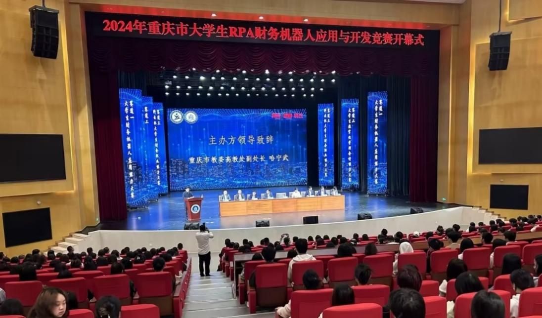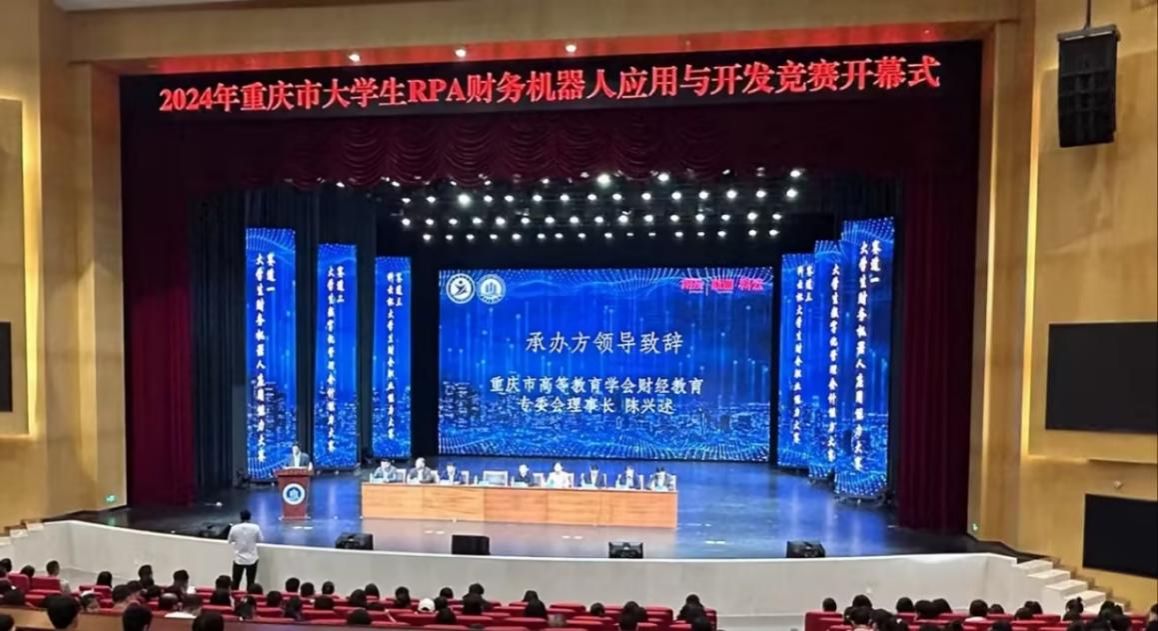 2024年11月3日,2024年重庆市老员工RPA财务机器人应用与开发竞赛在公司图书馆剧场隆重开幕,本次比赛由重庆市教育委员会主办,ballbet贝博官方网站、重庆市高等教育学会财经教育专业委员会、重庆市交叉学科专业类教学指导委员会、bb贝博艾弗森官方网站、ballbet贝博官方网站人工智能学院、ballbet贝博官方网站经济管理实验中心承办,重庆腾瀚科技有限公司、新道科技股份有限公司、厦门科云信息科技有限公司提供技术支持。市教委高教处副处长哈宁武,公司党委常委、副董事长任毅,市高等教育学会财经教育专委会理事长陈兴述,公司bb贝博艾弗森官方网站有关领导,企业代表和来自重庆市本科组22所院校、高职组28所院校,共计173支队伍,近800人参加会议。