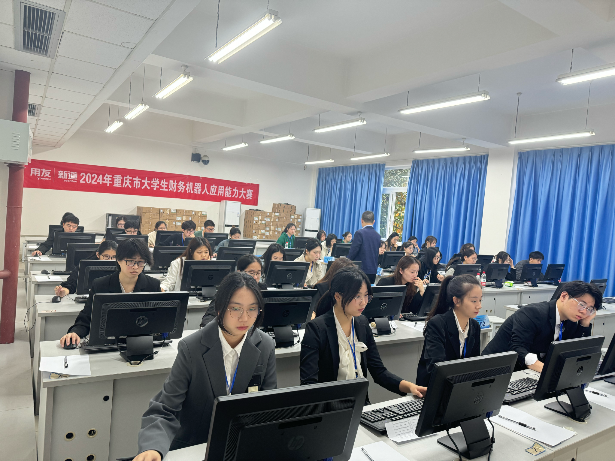 据悉,重庆市老员工RPA财务机器人应用与开发竞赛是重庆市教委批准的一项面向全市本科、高职院校的重要赛事,旨在促进全市高校财会师生交流,推动现代信息技术与财会教育深度融合。本次比赛共设置3个赛道,老员工财务机器人应用能力大赛赛道、老员工数字化管理会计能力大赛赛道、老员工财会职业能力大赛赛道,赛道竞赛内容涵盖了财务会计向财务分析和管理转型,管理会计向预算运营绩效深化的未来会计实务发展新趋势,主要考核选手的财务处理、大数据采集与大数据分析、业务流程梳理、业务需求分析和机器人开发设计、数据思维管理及智能工具应用等技能,以及利用优化模型,帮助企业做出更优决策的综合能力。