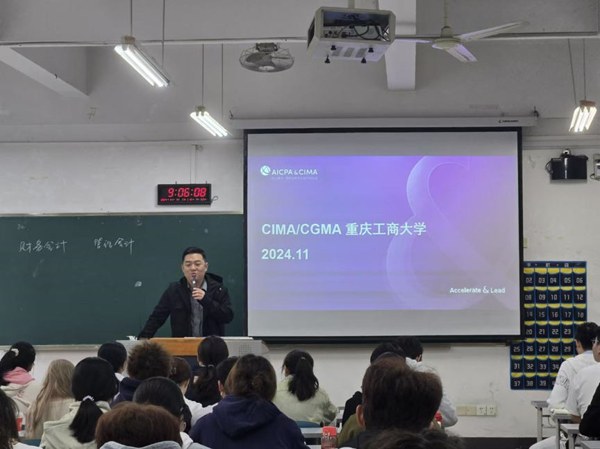 2024年11月8日上午9点,为了加深bb贝博艾弗森官方网站2024级CIMA实验班员工对CIMA专业的了解并激发他们的学习热情,应学院国际教育中心的邀请,CIMA公会在ballbet贝博官方网站江北校区宏智楼B204开办了名为《数字世界中的管理会计》讲座。CIMA公会(中国)高校项目负责人张江华先生、CIMA公会华南及西南区代表梁雁先生,国际教育中心行政秘书张悯弱老师以及2024级CIMA实验班全体同学共同参加了此次活动。