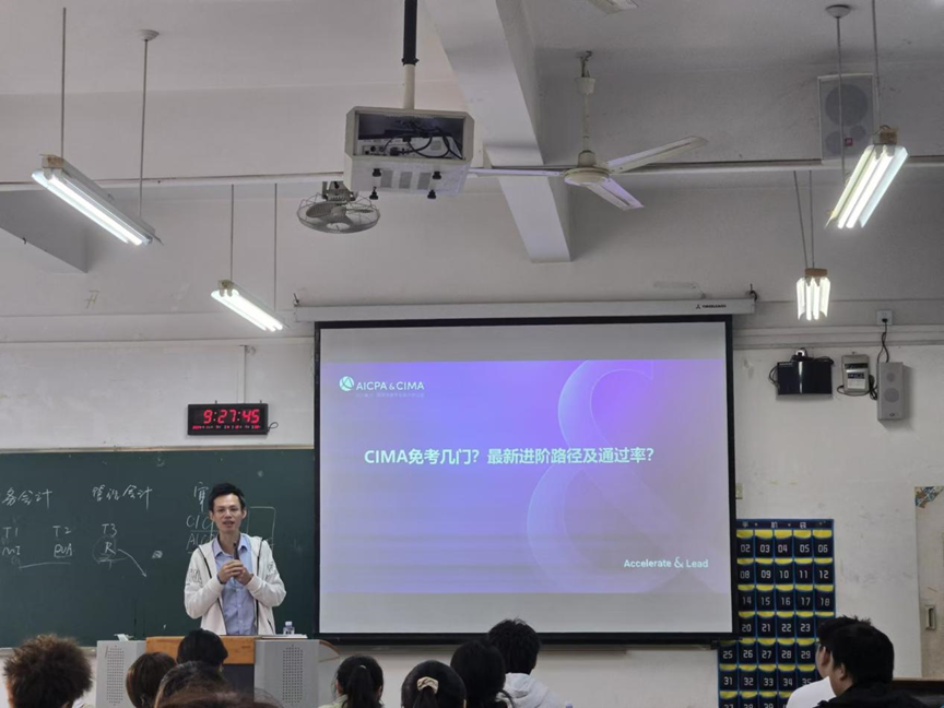 梁雁向同学们具体讲解了管理会计及CIMA专业的相关内容,并进一步向同学们介绍了CIMA专业的就业前景、考试路径及相关事项。同时,他着重强调了CIMA专业相关考试的历程、通过率与费用情况,并承诺CIMA公会将会为员工们提供全面的帮助与服务。