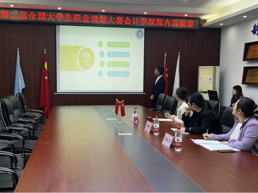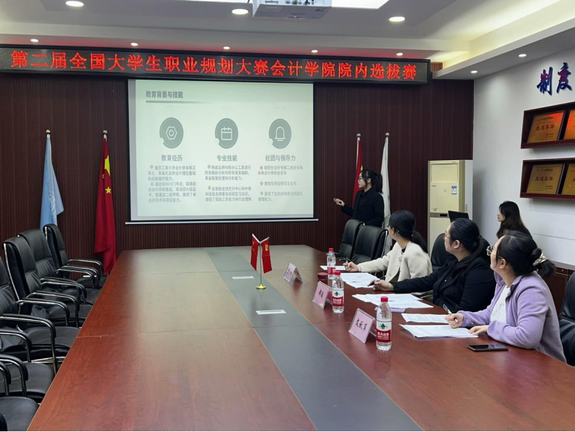 11月15日,成长赛道和就业赛道分别开展了线下展示环节。公司党委副书记郝颖,辅导员文秋萍老师、董小婉老师担任评委。比赛中,选手们逐一进行了1分钟VCR展示和2分钟自我陈述,并对评委提问进行回答。经过角逐,最终遴选出三名选手代表学院参与校赛。