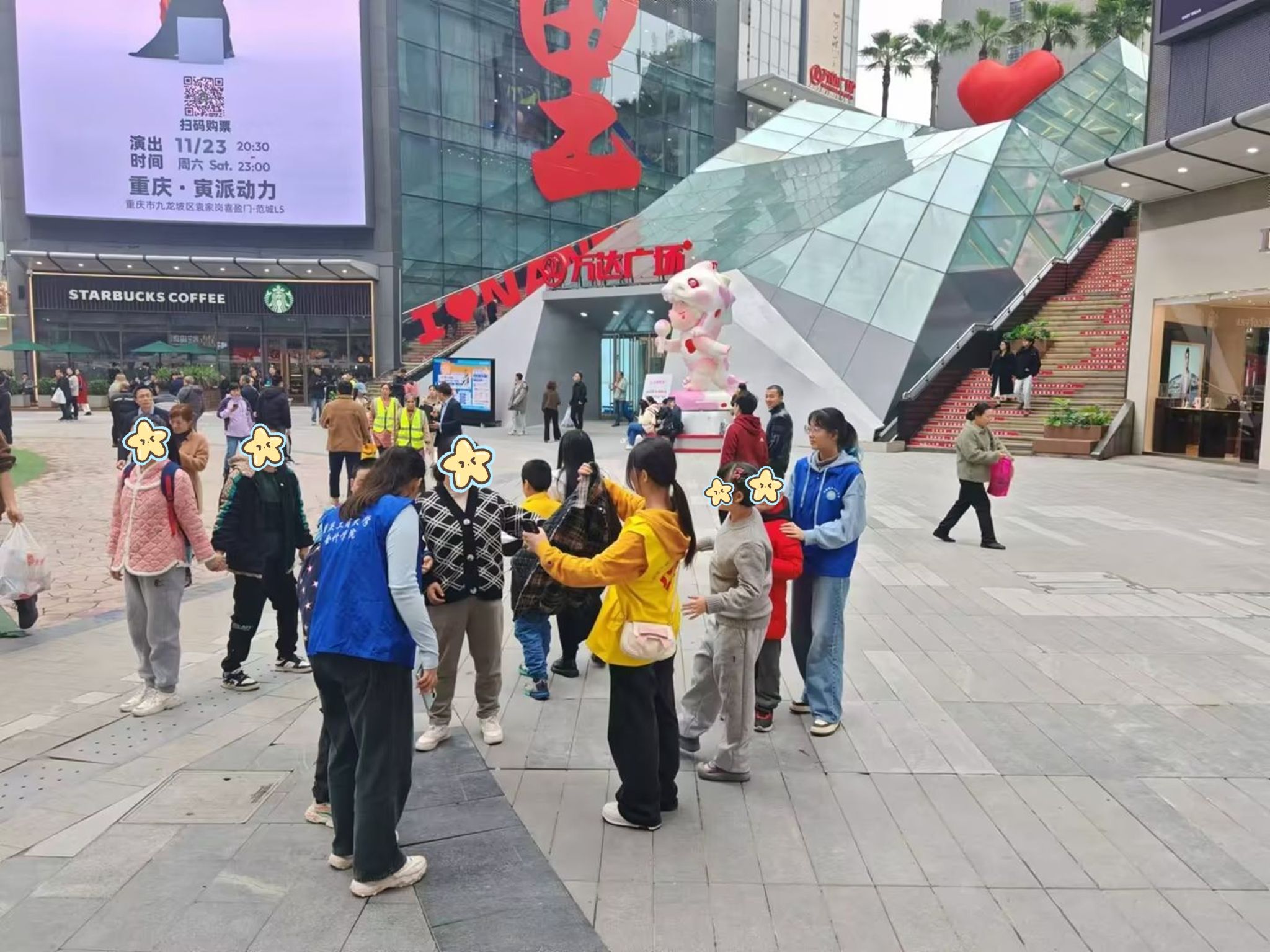 11月20日下午两点,志愿者们早早地来到智障儿童康复中心。为缓解孩子们面对陌生人时的害羞,志愿者们主动拉起眼中满是好奇与懵懂的孩子们的小手,蹲下身与他们轻声交谈,并给每一个孩子送上自己精心准备的小礼物,孩子们逐渐放松下来。随后志愿者带领他们前往商场,在进入新环境后,志愿者们细心关注着孩子们的一举一动。在一开始,有部分孩子有点胆怯,紧紧拽着衣角,但在志愿者们耐心地安抚、轻声细语地鼓励以及无微不至地关怀下,孩子们渐渐放松下来,勇敢地迈出了走向外面世界的脚步。走进商场后,志愿者们时刻关注着每一个孩子,耐心地给孩子们介绍着看到的各种东西,告诉他们商品的用途,让孩子们能更好地认识这个多彩的世界。