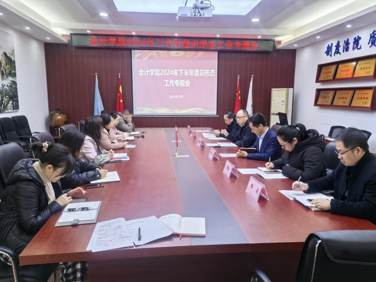 最后,邓德敏全面总结了学院下半年意识形态工作,科学分析研判当前意识形态工作形势,并就下一步工作作出安排布置。他指出,要提高政治站位,充分认识意识形态工作的极端重要性,增强意识形态工作的责任感和紧迫感,同时,对下一步做好意识形态工作提出要求:一是针对重要节点及时开展舆情风险及意识形态领域风险隐患集中排查,做到重点区域、重点人员全覆盖,做好领导带班及值班值守工作,确保意识形态工作任务落到实处;二是临近年终岁尾要做好各项工作总结,做好迎评工作,确保教学秩序正常,积极关注教师教学课堂和员工期末考试、毕业生就业相关工作;三是强化学风建设,对心理异常、学习困难、家庭困难、少数民族员工加强关心;四是常态化做好员工社团管理和学术讲座、会议及教职工外出培训参会的审核审批工作,管理好网络宣传阵地,落实新闻发布“三审三校”制度,把好教材关;五是领导班子成员要切实履行“一岗双责”,落实意识形态工作责任制,把意识形态工作与各项业务工作同部署共安排;六是师生要始终做到严以律己,保持定力、守牢底线,管好个人“朋友圈”“生活圈”“娱乐圈”,做到心有所戒、行有所止。