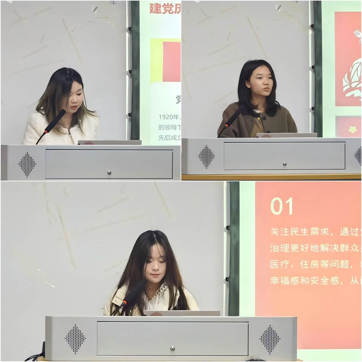 23会计硕士班的张欣雨分享了红色书籍《建党1921》,她带领同学们走进中国共产党创建这一“开天辟地大事变”的历史现场,一起感悟革命先辈的伟大创新精神和建党的艰辛历程。24级审计硕士班刘航好同学分享的是红色小说《红岩》,她以生动的故事入手,让同学们更加深刻地理解那个时代的历史背景和社会环境,认识到中国共产党人为民族独立和人民解放所作出的巨大贡献。24审计硕士班的王霖同学则分享了《新时代党建引领基层社会治理》,帮助同学们进一步理解在新时代背景下如何充分发挥党建引领作用以提升基层社会治理效能、助力社会治理现代化。