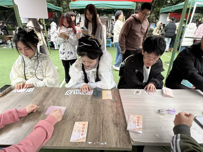 财会研究会精心策划,不仅准备了充足的道具,还为挑战者提供了丰富的奖品,确保每位参与者都能在游戏中有所收获,提高参与者的积极性。活动当天,现场气氛热烈,参与者们热情高涨。在“24点”挑战中,他们或独自思考,或团队协作,有的借助计算器,有的人甚至搬出了小爱和豆包等人工智能,全力以赴地寻找数字间的奥秘,争取在最短的时间内得出正确的答案。现场不时传来欢呼声和掌声,拿起印章在集印区盖下的那刻,满满的成就感油然而生,充分展现了数学游戏的魅力与乐趣。
