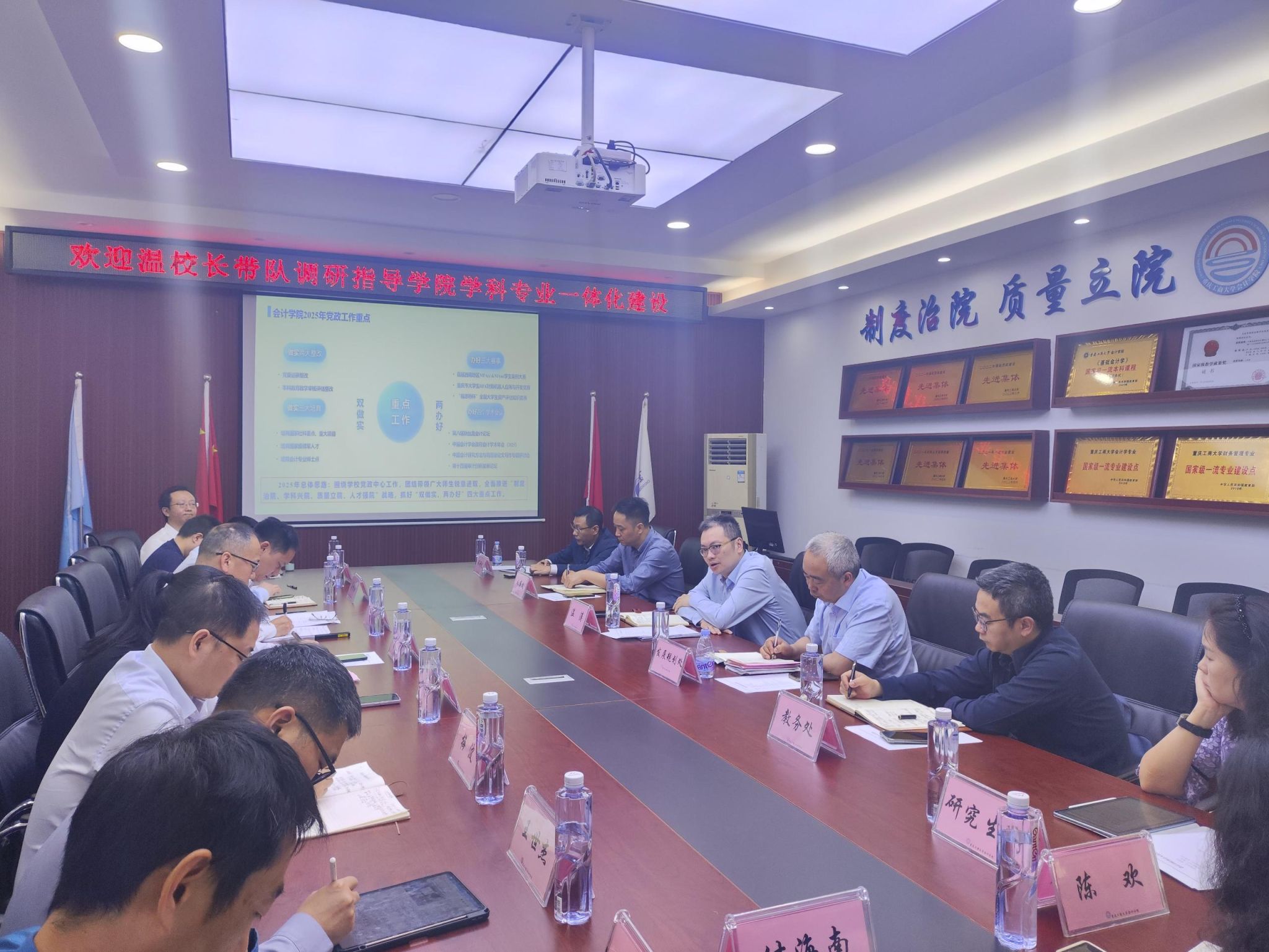 会上,经理钟廷勇从学院学科专业建设基础、存在的短板与问题、下一步建设思路与举措等方面介绍了学院基本情况,并围绕学科专业一体化建设、会计学博建设、会计专博申报等工作进行了汇报。