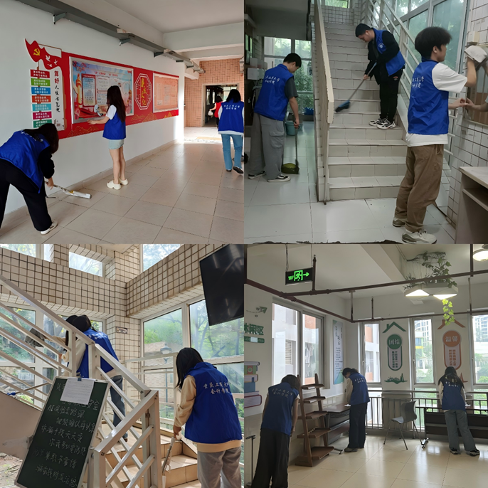 五一劳动节来临,当整个校园沉浸在假日的静谧氛围中时,bb贝博艾弗森官方网站的一群楼栋干部身着醒目的宝蓝色志愿者马甲,手持清扫工具,踊跃投身校园清洁行动。他们以实际行动诠释劳动精神,彰显新时代青年的蓬勃朝气与青春风采。