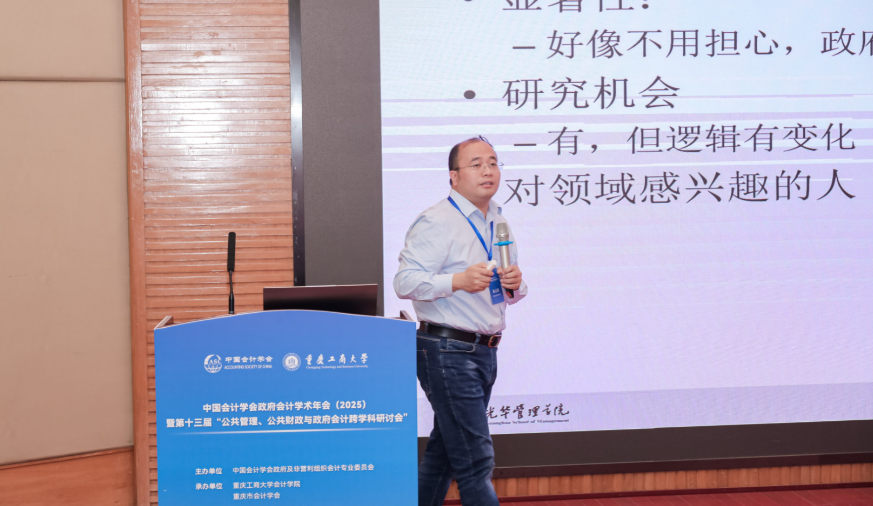 北京大学光华管理学院麻志明教授以“政府会计实证研究的趋势与机会”为题,围绕政府会计实证研究的内容、方法与发展历程进行了系统阐述。他指出,政府会计研究应更加注重方法整合与跨学科融合,实证研究成果能够为政策制定与施政成效评估提供坚实的支持。通过回顾国内外研究成果的发表情况,麻教授发现政府会计研究领域近年来发展迅速,研究主题不断拓展,特别是在政府采购、财政补贴及非结构化数据等方向呈现出新的突破。他鼓励青年学者把握政府数据逐步公开带来的研究契机,聚焦具有经济与社会意义的研究议题,推动中国政府会计研究持续深入与国际化发展。