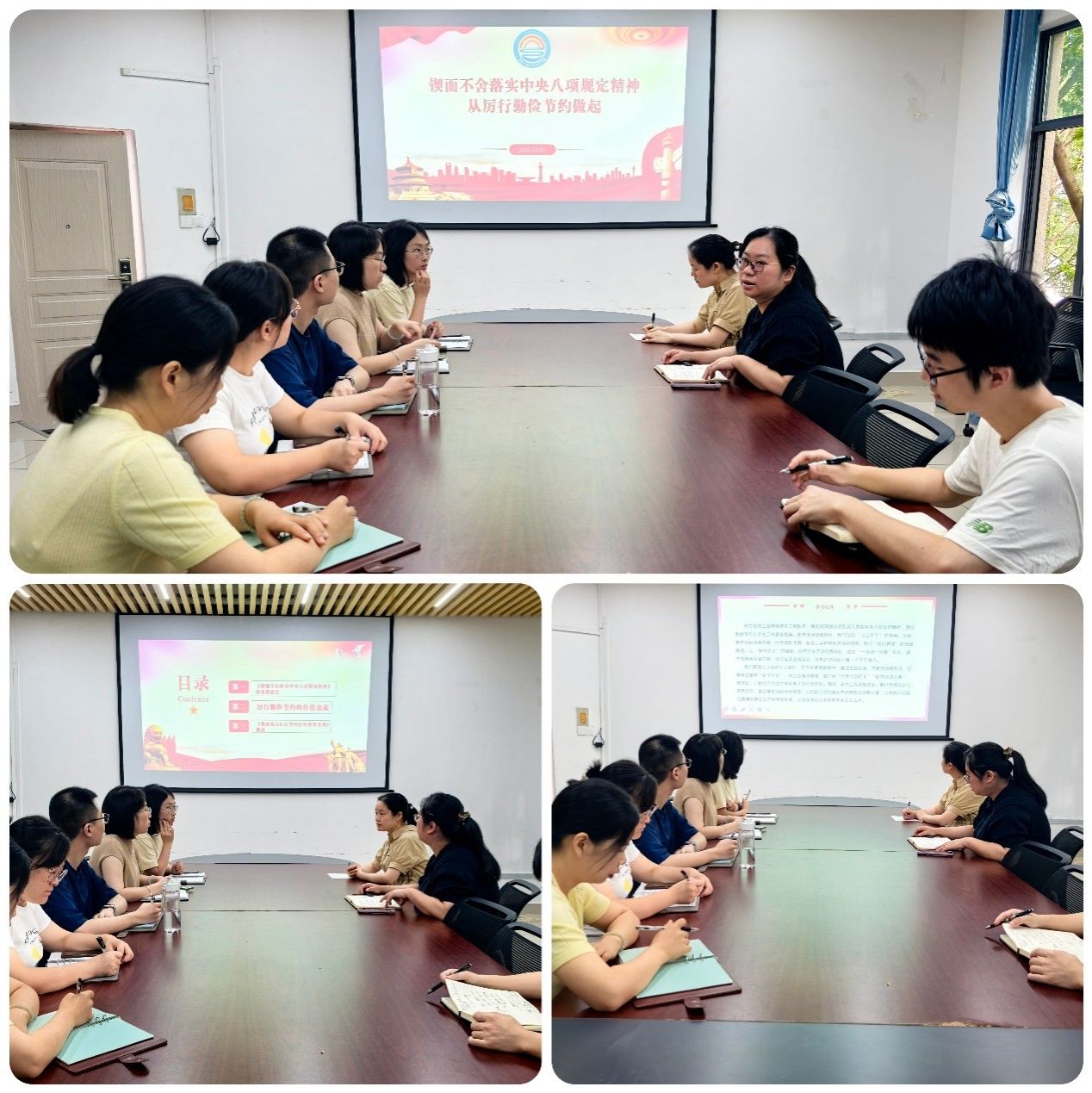 结合学院员工工作,郝颖指出,作为高校二级学院员工工作队伍,应深刻认识到深入贯彻中央八项规定精神、厉行勤俭节约与员工工作紧密相连。在员工活动组织中,当以 “以上率下” 的担当,从采购物资到场地布置,杜绝铺张浪费,如用二手材料制作活动道具,践行“俭以养德”的传统美德;以 “抓早抓小”的细致,规范员工活动经费审批,建立 “一活动一预算”机制,像严控晚会礼品开销、推行电子邀请函等,将节约理念融入每一个工作细节。更要以《条例》为准则,在员工思想教育中,通过主题班会、志愿活动等形式,引导员工摒弃“面子文化”,树立正确消费观,如开展“光盘行动打卡”“旧物改造大赛” 等活动,让勤俭节约成为青年学子的行动自觉;同时,在办公资源管理上,推行无纸化办公、双面打印,整合员工活动场地资源,以实际行动为建设节约型校园贡献力量,让中央八项规定精神在员工工作中落地生根,以优良作风引领青年员工成长成才。