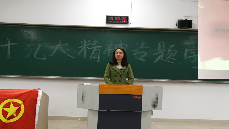 这些活动主要是围绕“学习党的十九大精神重要意义,全面深刻学习领会党的十九大精神,党员、团员如何付诸实践贯彻落实党十九大精神”三个方面展开宣讲。会议要求,全体人员要强化学习党的十九大精神的主观意识,做到深入学,持续学,反复学,切实深刻领会,入脑入心。活动的最后是十九大上的精彩语录的分享,大家都听得很认真。