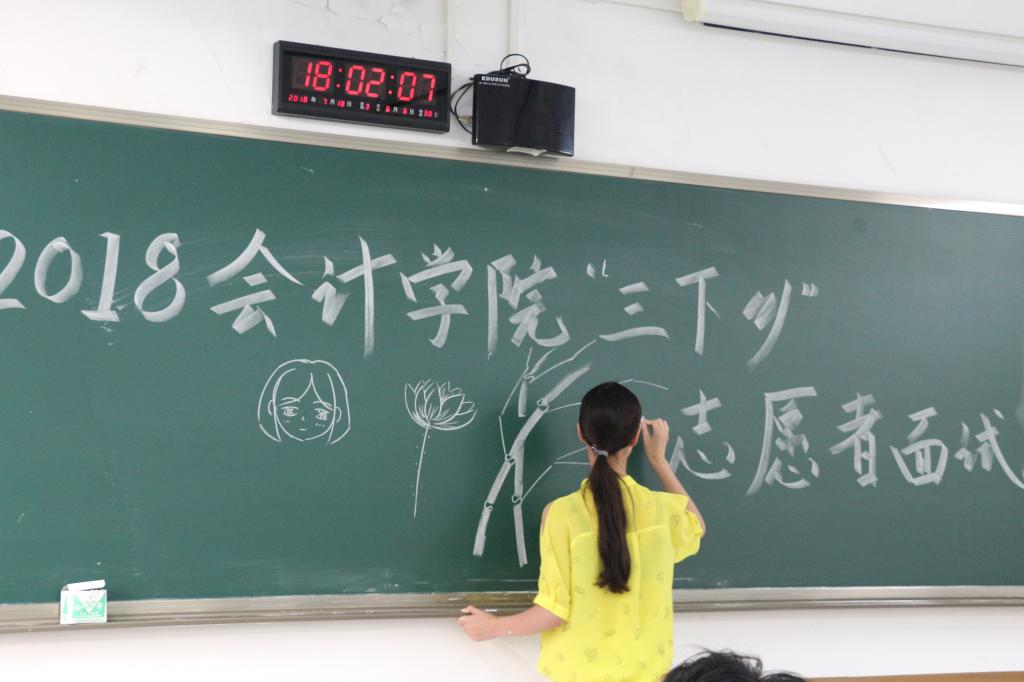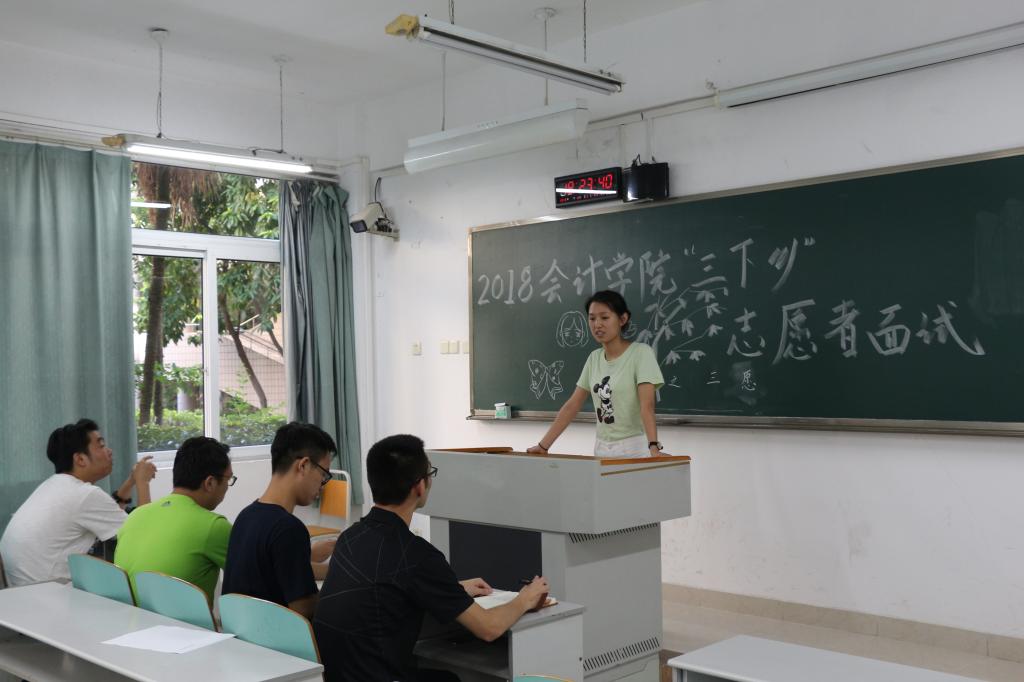 2018年7月18日下午18点,bb贝博艾弗森官方网站“三下乡”志愿者面试于南岸校区博智楼109教室正式开始。来自bb贝博艾弗森官方网站的二十余位同学参加了本次面试,分团委员工会主席团干部廖佳于、高家祺、孙桃、陈跃担任面试官。