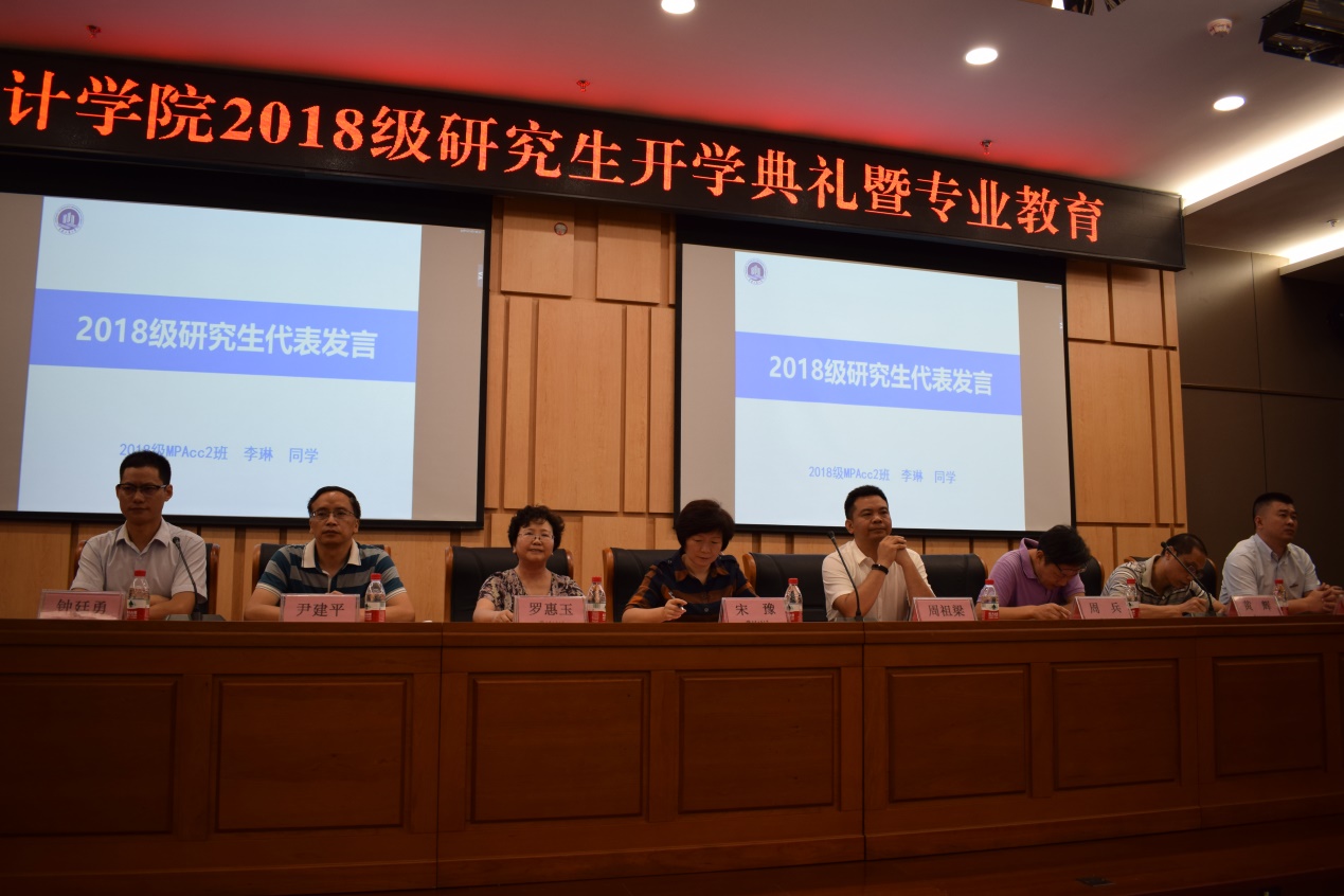 典礼在雄壮的国歌声中拉开序幕。随后bb贝博艾弗森官方网站分党委尹建平副书记宣读《关于对2018级会计学术研究生新生奖学金获奖人员进行表彰的决定》以及《关于对2017级MPAcc新生奖学金获奖人员进行表彰的决定》,参会领导对新生特等奖3人、一等奖9人进行了表彰颁奖。