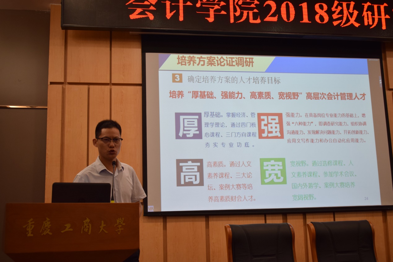 在第二阶段的MPAcc研究生入学教育中,MPAcc教育中心主任钟廷勇副教授对MPAcc项目做了介绍,从培养方案、课程设置、团队配备、人文素养、培养成果等方面进行了详细的阐述,MPAcc中心赵亚老师和刘念老师也分别从教学运行和学位工作方面做了介绍。