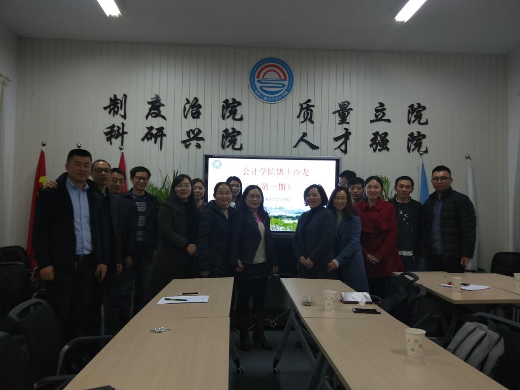 11月10日(周六)早上9点20分,bb贝博艾弗森官方网站第一期博士论坛在明德楼2016会议室举行,学院分党委罗惠玉书记、程文莉副经理、黄辉副经理,全体博士以及部分研究生出席了本期论坛。罗惠玉书记提出了开展博士论坛对于提升bb贝博艾弗森官方网站教师的科研水平和bb贝博艾弗森官方网站在学校的影响力具有非常重要的意义,并希望学院教师积极参与和配合,把博士论坛持续地开展下去。程文莉副经理传达了学校领导对开展博士论坛寄予的厚望。