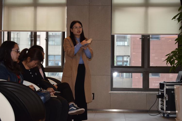 接下来,工业设计部曾科斯经理在会议室向同学们进行了更深入的介绍。曾经理从“工艺企业产品众筹”、“智能家居进入线下”及“IOT智能控制中枢”三个方面说明了大环境下公司成立背景,并简要介绍了公司目前分布情况及发展方向。